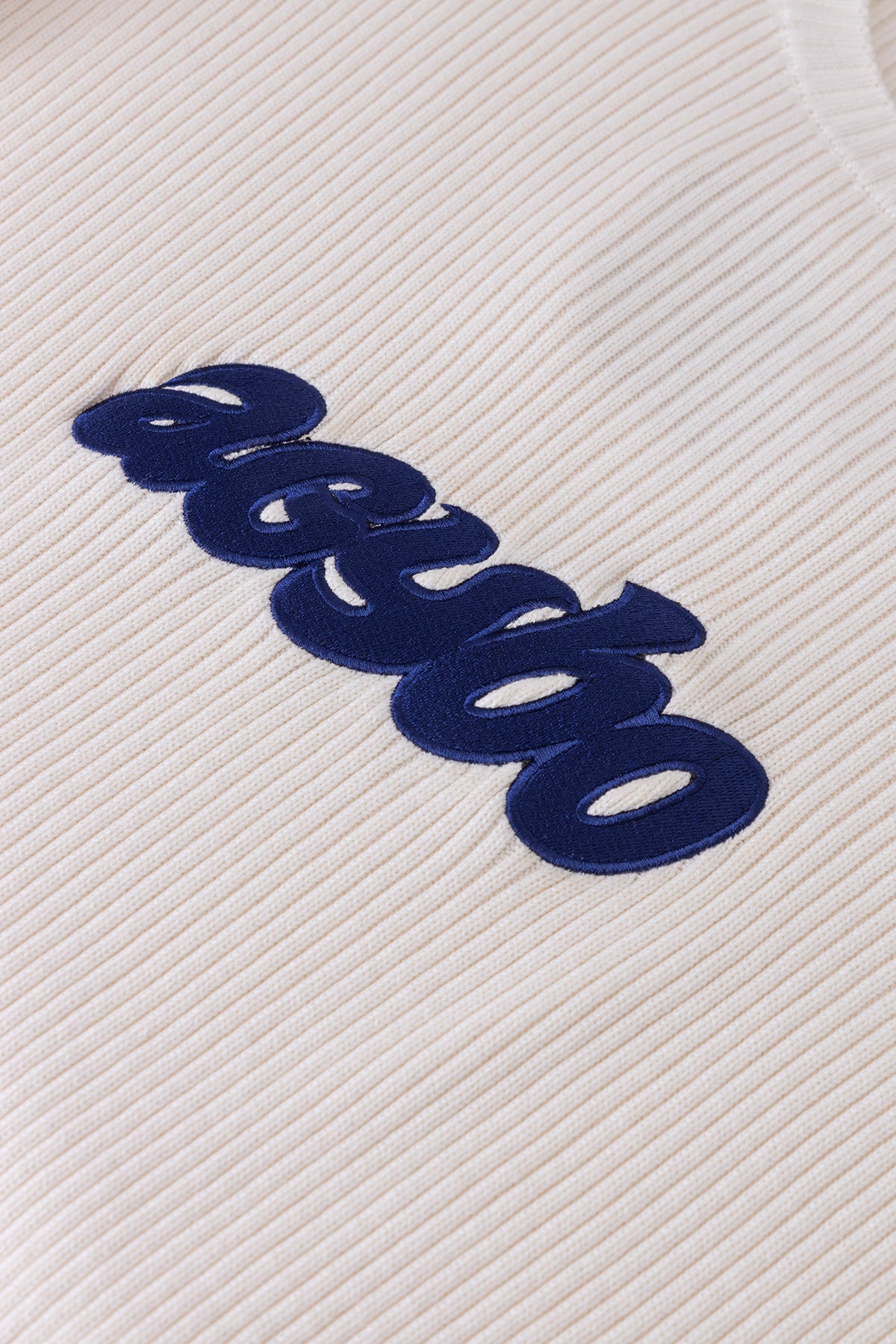 Suéter Premium color crema en tejido doble punto, con diseños de Ready Set Love bordados en la parte delantera y posterior