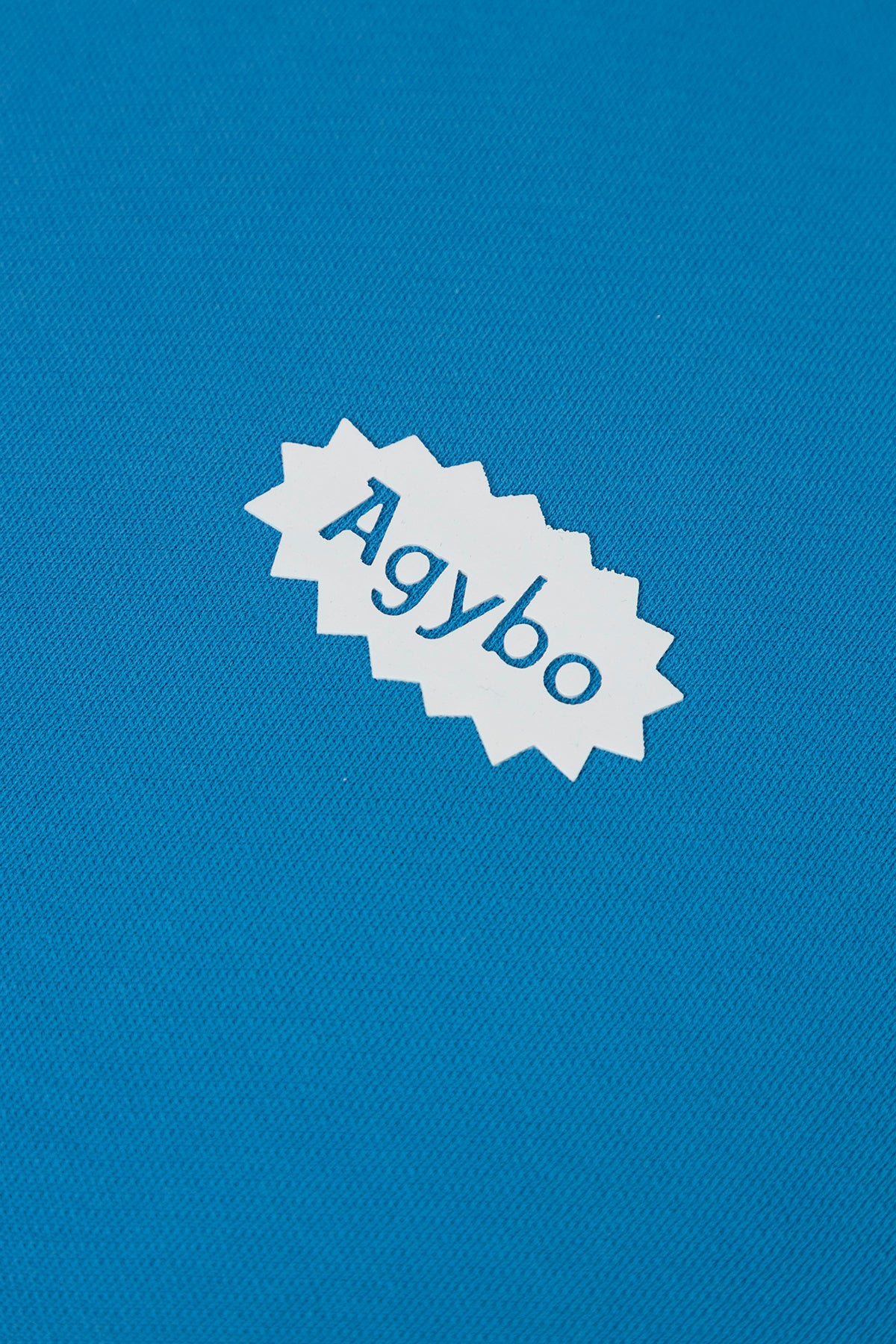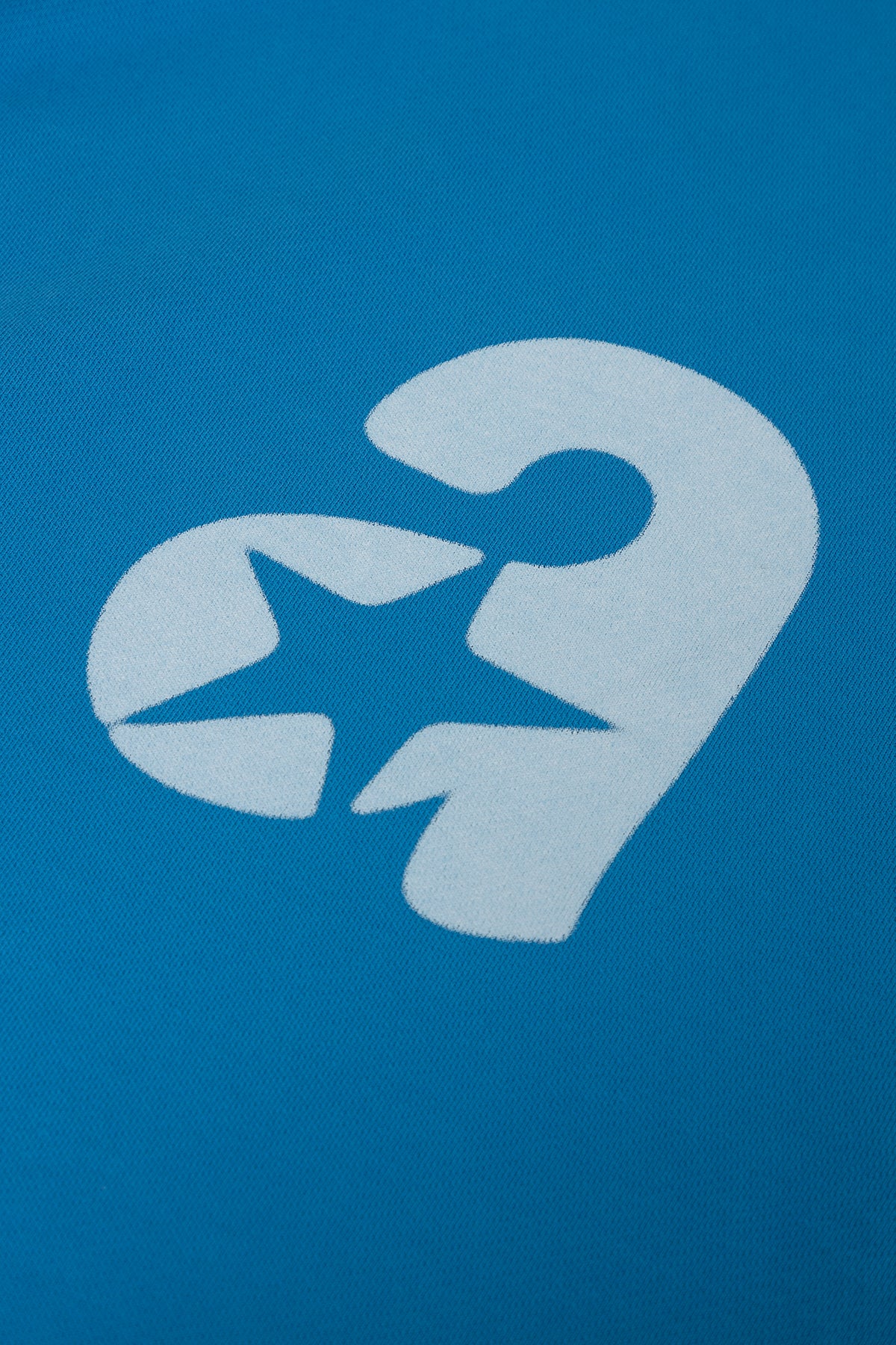 Confeccionado con tela en algodón premium de 400 gramos color azul, con estampado en punto corazón en alta densidad y un estampado ubicado en la parte posterior